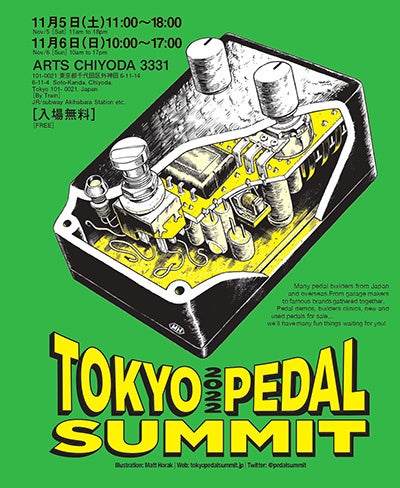 様々な楽器カテゴリの中でも「エフェクター」は楽器とアンプとの間でつなぐものであり、その組み合わせや接続方法の自由さが大きな魅力です。制約の多い昨今において「自由に繋がる」ことを体感できるイベントが開催される意義は大きいと私どもは考えます。そこで改めて、この2022 年秋に東京・秋葉原にあるイベントスペース「3331 Arts Chiyoda」に会場を移し、展示、試奏など、よりエフェクターの魅力を来場者に伝えやすい環境をご用意し、国内最大級のエフェクターイベントとして「東京ペダルサミット2022」を11月5日(土)6日(日)に開催致します。