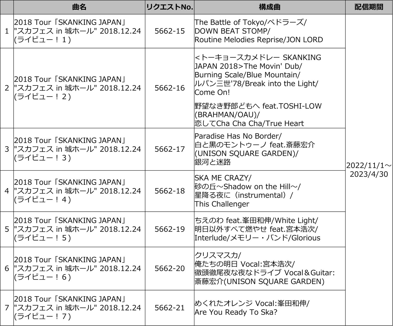 「ライビュー!」において、2018年のクリスマスイブに大阪城ホールで開催された、東京スカパラダイスオーケストラの全国ツアー『SKANKING JAPAN』ファイナル公演より、熱狂のライブ映像を11月1日より期間限定で独占配信します。