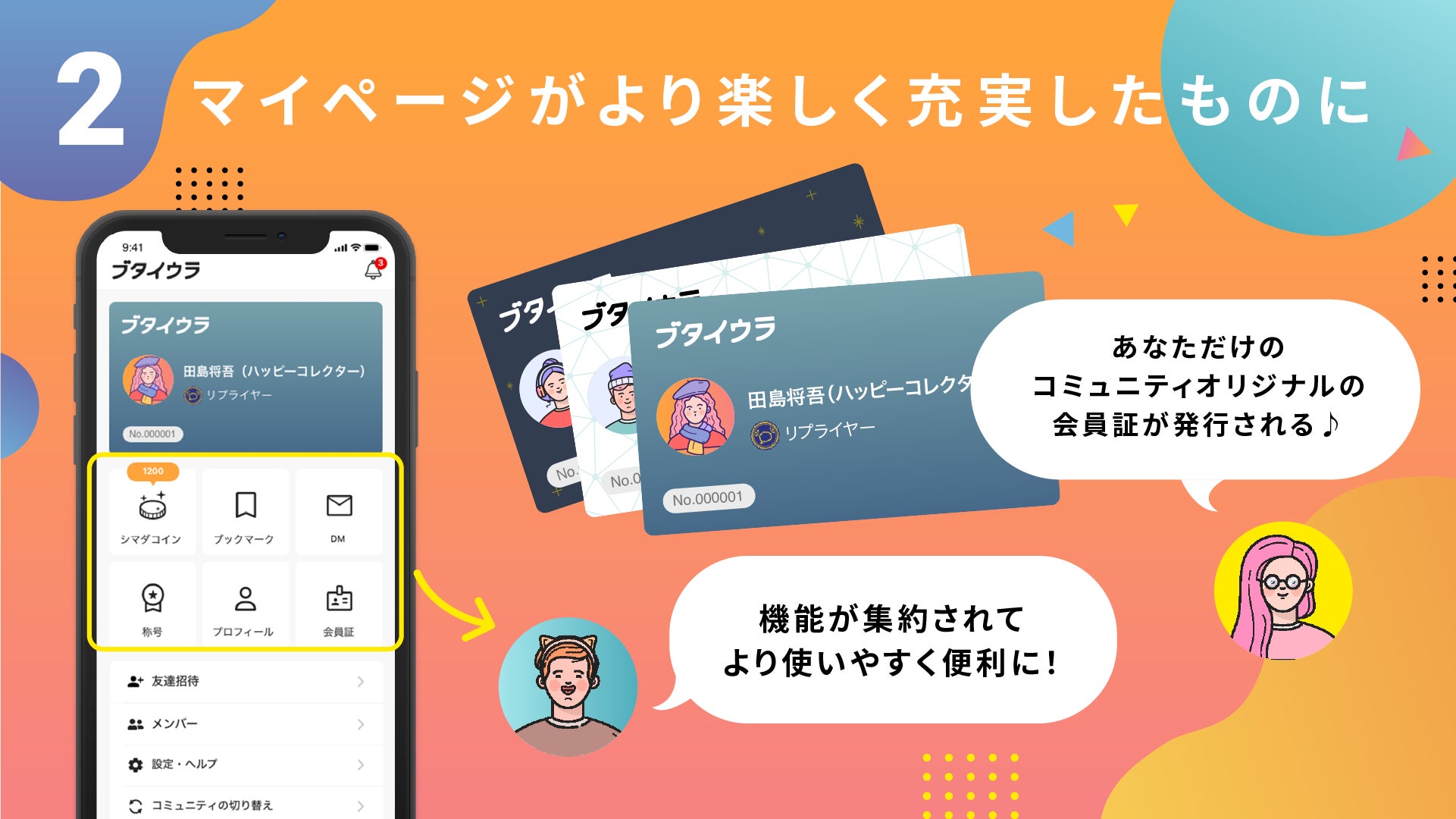 トイウェア株式会社(本社:東京都港区、代表取締役:岸 卓甫、以下 トイウェア)は、オンラインコミュニティアプリ「ブタイウラ」をリニューアルしました。トップページがより見やすく、オーナーの世界観に合わせたカスタマイズも可能に。マイページの機能も更にパワーアップし、オリジナルの会員証作成ができるようになりました。