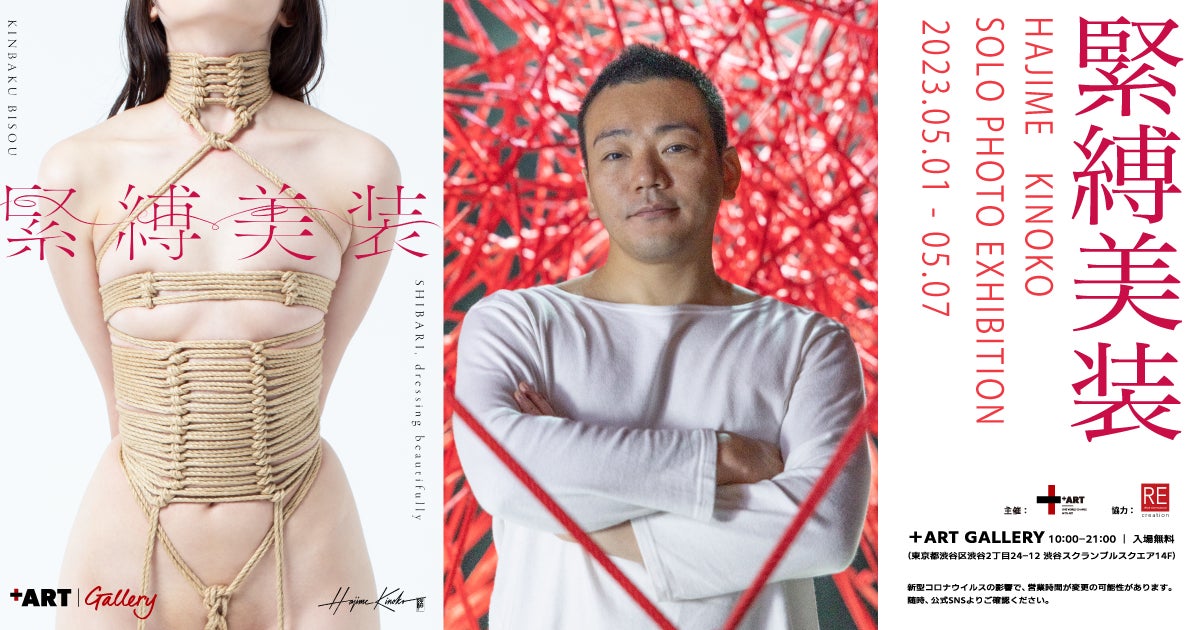 2023年5月1日(月)より緊縛師・Hajime Kinokoによる写真集販売記念の個展「緊縛美装」を現代アートの最先端を体感できるギャラリー「+ART GALLERY」にて開催。Hajime Kinokoによる日本の伝統的な美的感覚と技術を基に発展してきた芸術手法「緊縛」を用いた展覧会を堪能してください。