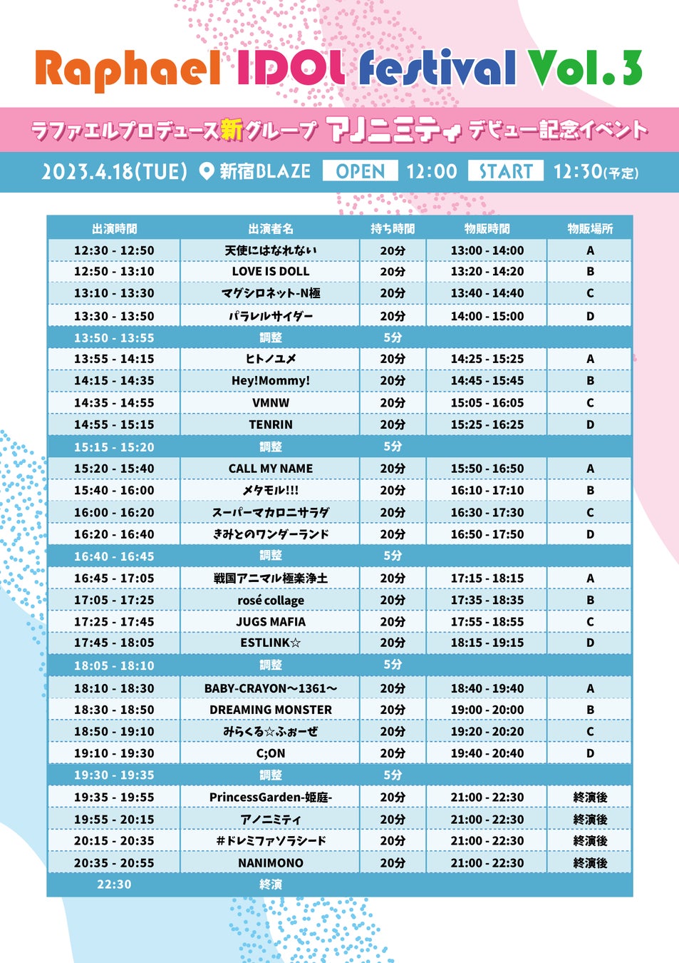 2023年では初開催となる「#ラファエルフェス」は、総勢24組のアイドルが出演します。