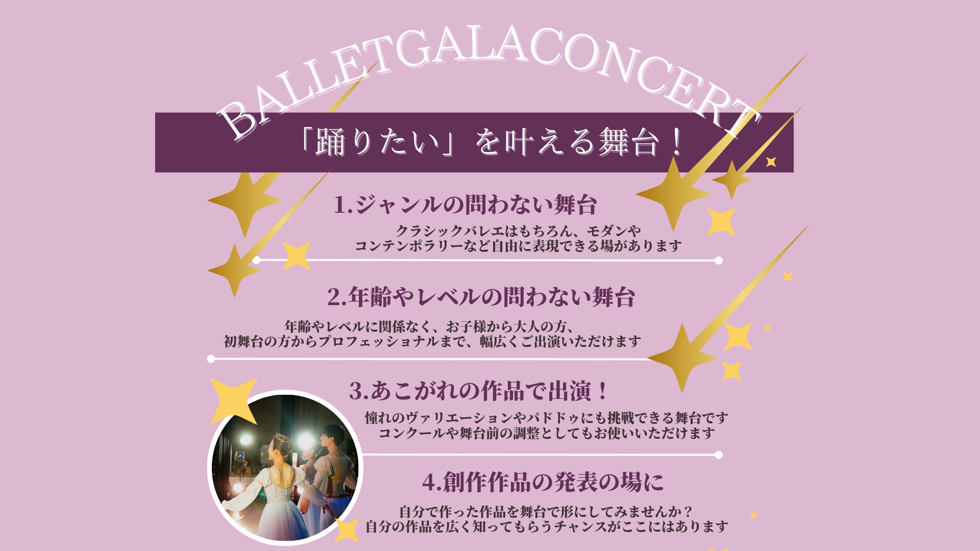 バレエガラコンサートには、その願いを叶えるために下記のようなサポートをご用意しております。