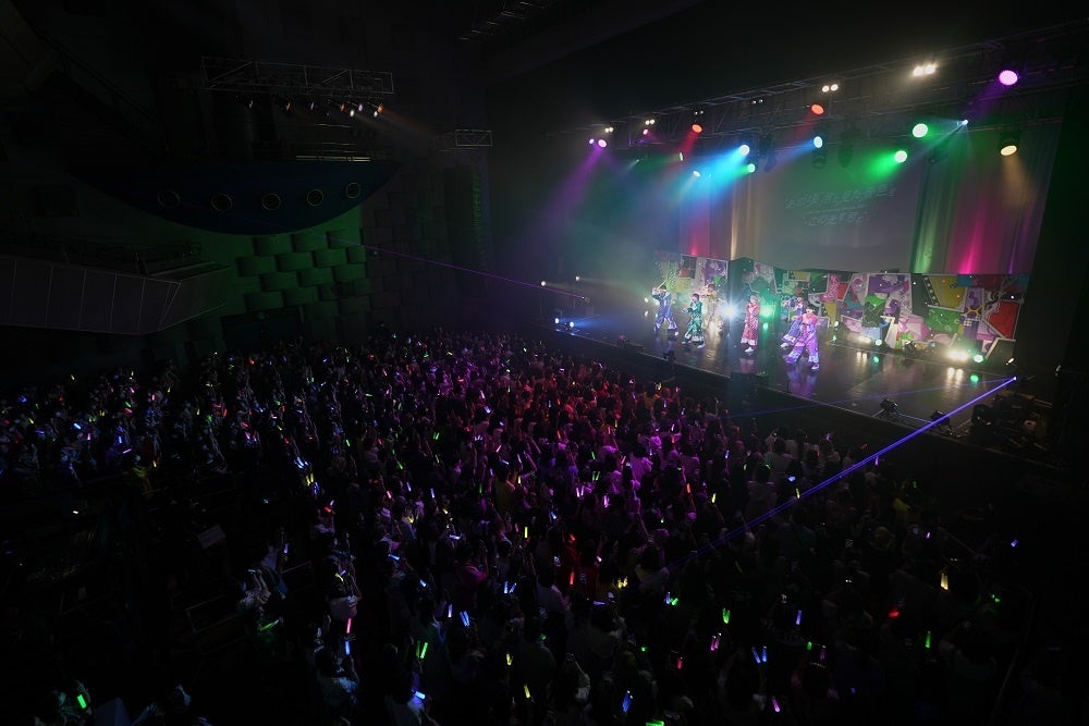 この日は大阪公演ということで、メンバーがそれぞれ関西弁でMCに挑戦するほほ笑ましい一幕も。四季涼雅と仮屋瀬さつきの仲むつまじいトークにも笑顔が絶えない。かと思えば、衣装チェンジしたダンスブレイクでは、ド派手の照明とシンクロしたパフォーマンスでも躍動感たっぷりに魅せていく。