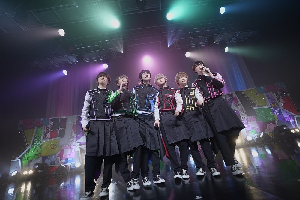 後半戦は、六花清春の「まだまだ盛り上がっていきましょう!」の一声から始まった撮影OKの最新曲「ジーニアスター」をはじめ、メンバーカラーのオールインワンを身にまとった6人が、高速BPMのハイテンションナンバーを次々と披露。他にも、今回のツアーに向けて改めて練習したという市川のドラム演奏も見どころの「夜もすがら君想ふ」と、とにかくファンを喜ばせたいという思いが伝わるセットリストを最後まで展開。双葉小太郎が告げた「皆さんとの一秒一秒が思い出です、いつもありがとう!」との言葉が、それを如実に表していた。