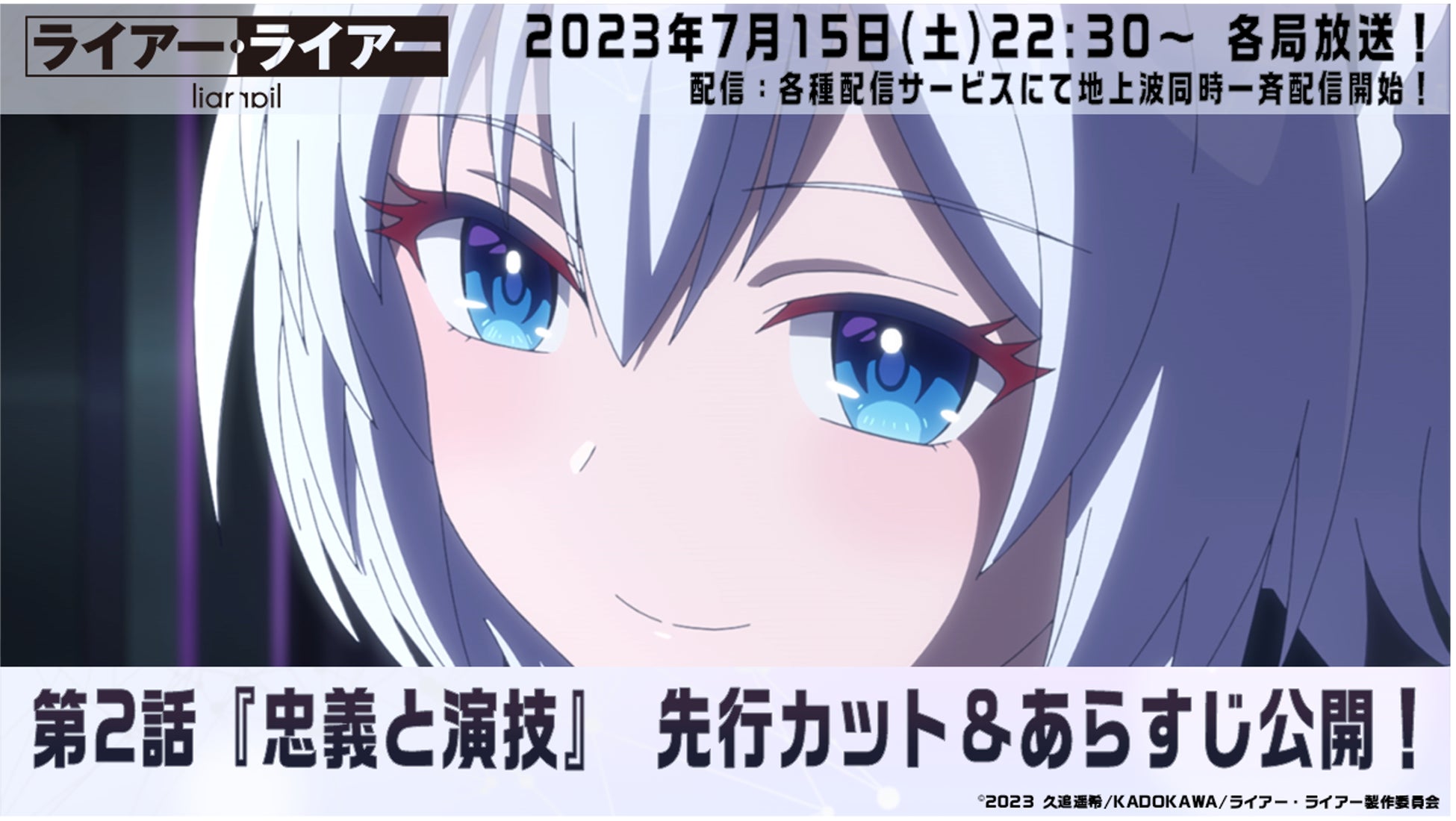 株式会社サイバーエージェント(本社:東京都渋谷区、代表取締役:藤田晋、東証プライム市場:証券コード4751)は、KADOKAWAのライトノベルレーベル「MF文庫J」より大人気刊行中の、絶対に負けられない学園頭脳ゲーム&ラブコメ原作TVアニメ『ライアー・ライアー』より、第2話先行カットとあらすじを7月10日に初公開いたしました。