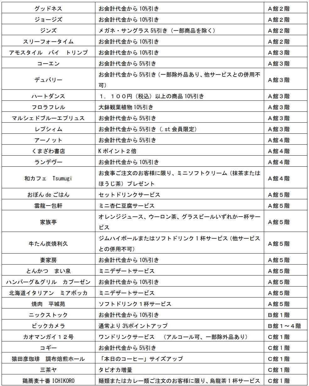 ※各店の特典内容は予告なく変更する場合があります。