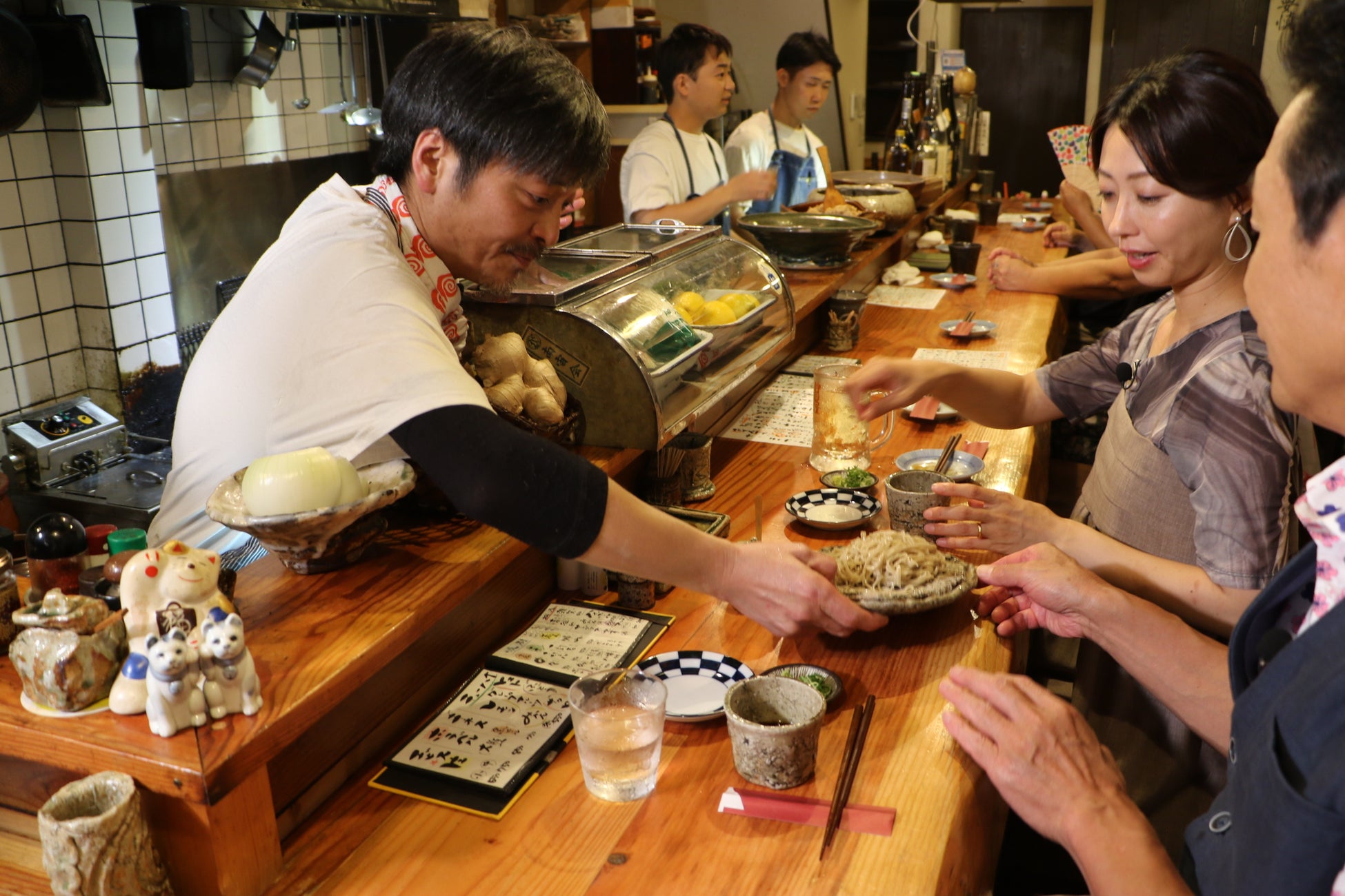 旅の締めくくりには、四条室町の居酒屋「円屋」へ。炭焼きの豚肉に入念なタレが絡み、さらに九条ネギの炭焼き、そして1日15食限定の手打ちそばを心行くまで堪能。新旧が織り成す豊かな京都の風景と味に感動のひとときを過ごします。