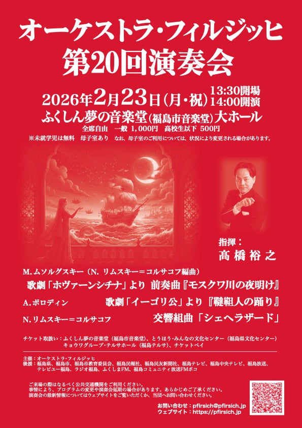 オーケストラ・フィルジッヒ『第20回演奏会』全曲ロシアの作曲家の作品を取り上げました。ムソルグスキー・ボロディン・コルサコフの懐が深く、陰影に富んだ個性豊かな世界をお楽しみください。