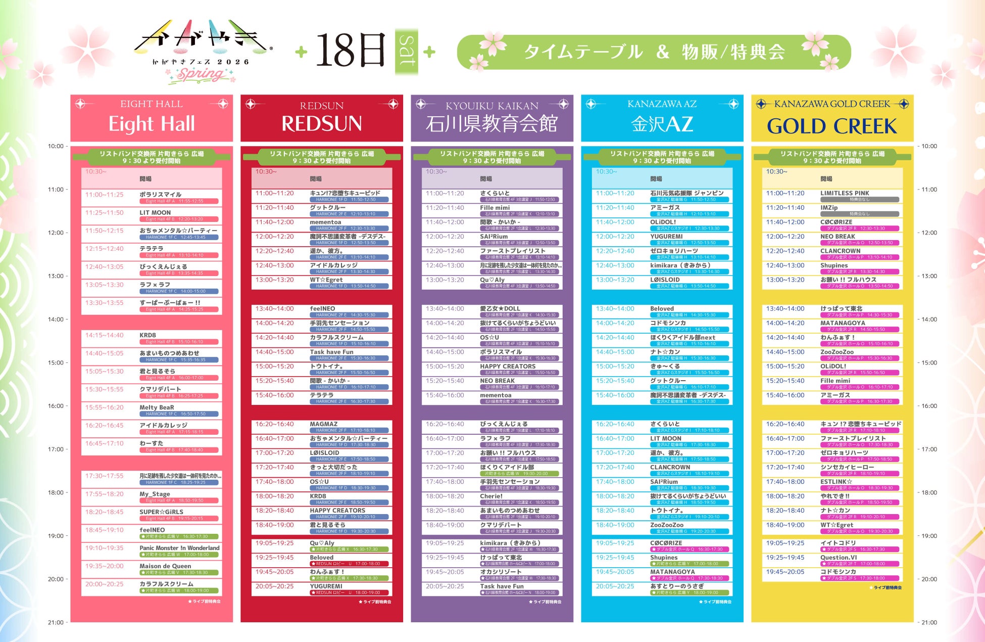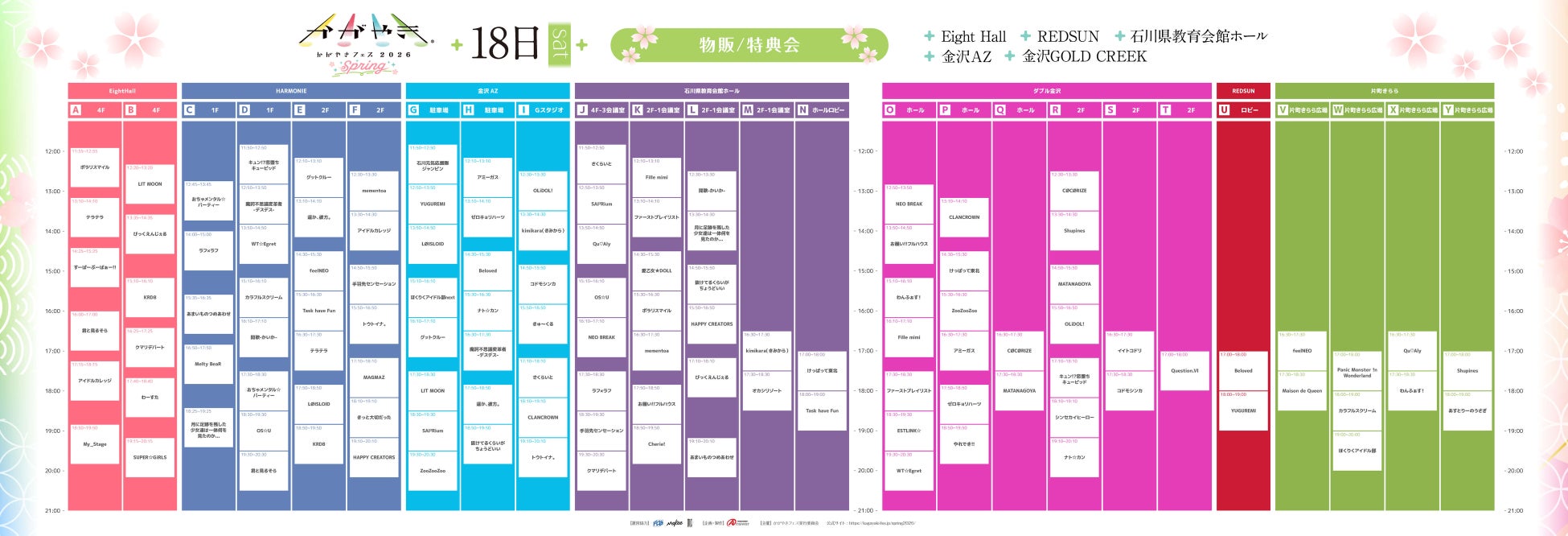 18日(土)出演タイムテーブル