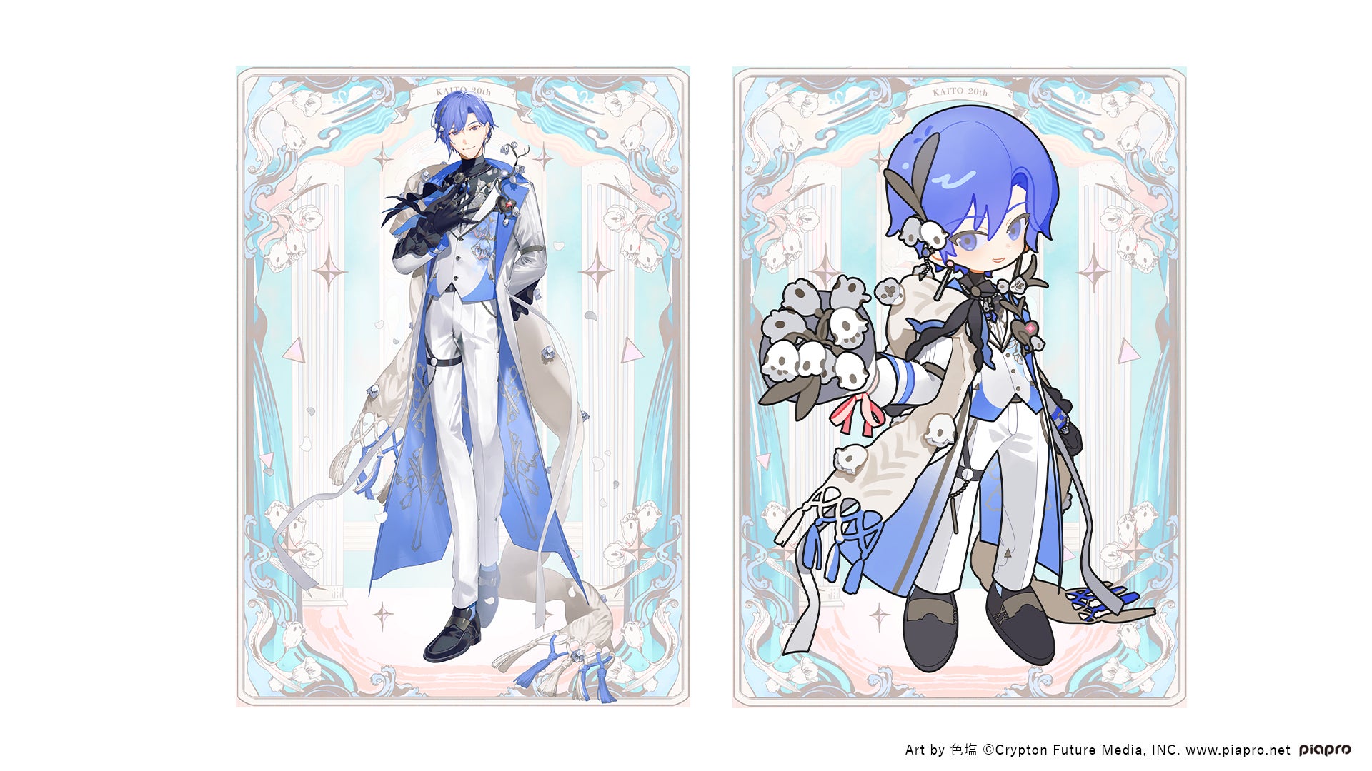 イラストレーターの色塩氏により、KAITOの等身イラストとミニキャライラストの2種が描き下ろされました。等身イラストではアニバーサリーにふさわしい特別感を、ミニキャライラストでは親しみやすさを表現。アクセサリーと連動したビジュアル展開により、世界観とプロダクトが一体となった企画となっています。イラストを使用したアイテムも展開予定です。